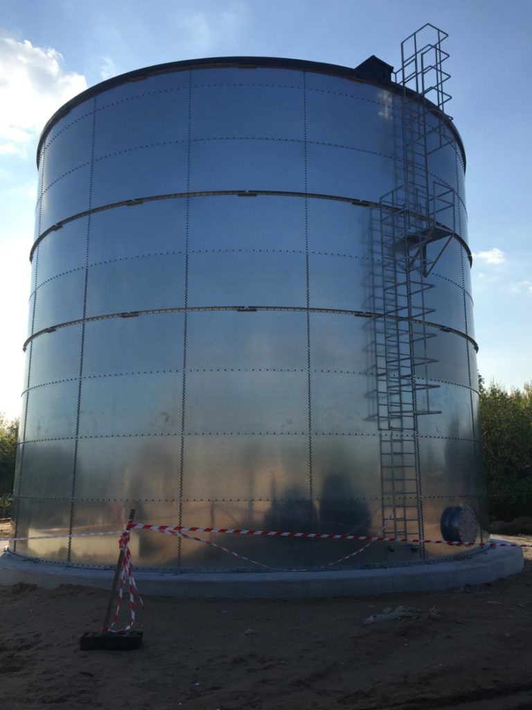 Galvanized steel tanks are an economical way to store drinking water, fire fighting water, rain water, raw water, various types of waste water, etc.Tank dimensionsWe supply tanks with a capacity ranging from 9m3 to more than 4000m3, and with a diameter ranging from 3.1m. Consequently, we are able to to offer a product for a wide range of specifications and requirements.Tank componentsThe highest quality galvanized steel sheets, which are bolted with each other to form a cylinder construction. Such a technology allows to reduce installation time and costs – replacing the massive concreting and welding works.
